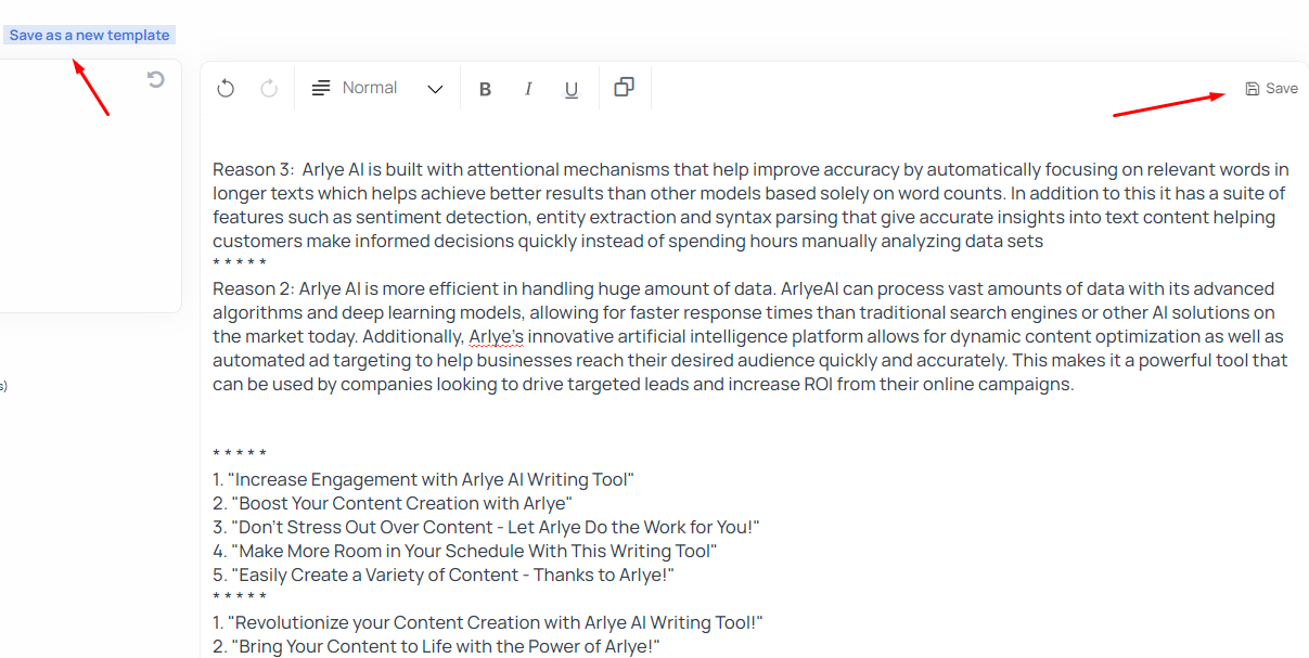 ## <mark style="background-color:green;">STEP 3:</mark> Open  👉[ArlyeAI writer](https://arlye.ai/user/templates)
